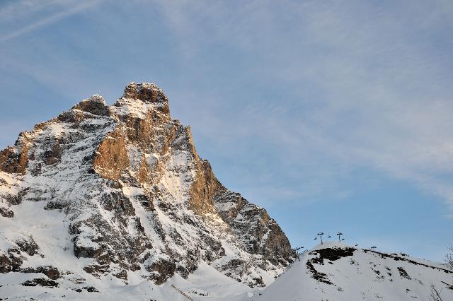 | Несмотря на то, что внизу было тепло и солнечно, наверху поднялся сильный ветер, и большую часть подъемников выключили |