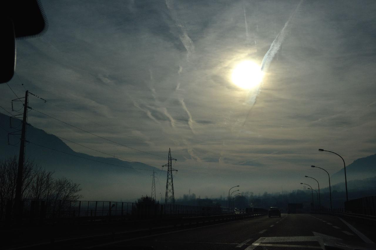 | Долины Италии, как и всю эту неделю погружены в туман |