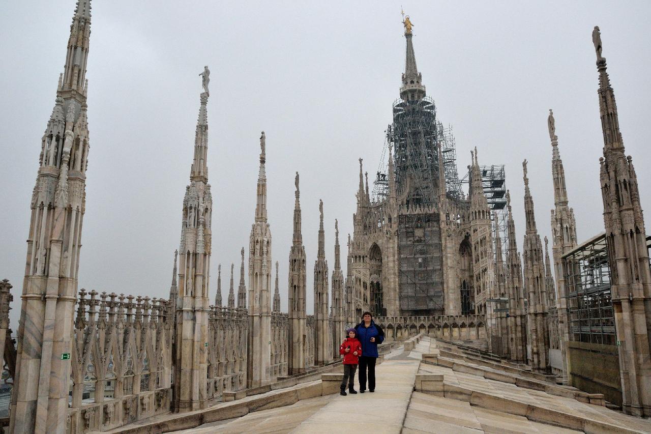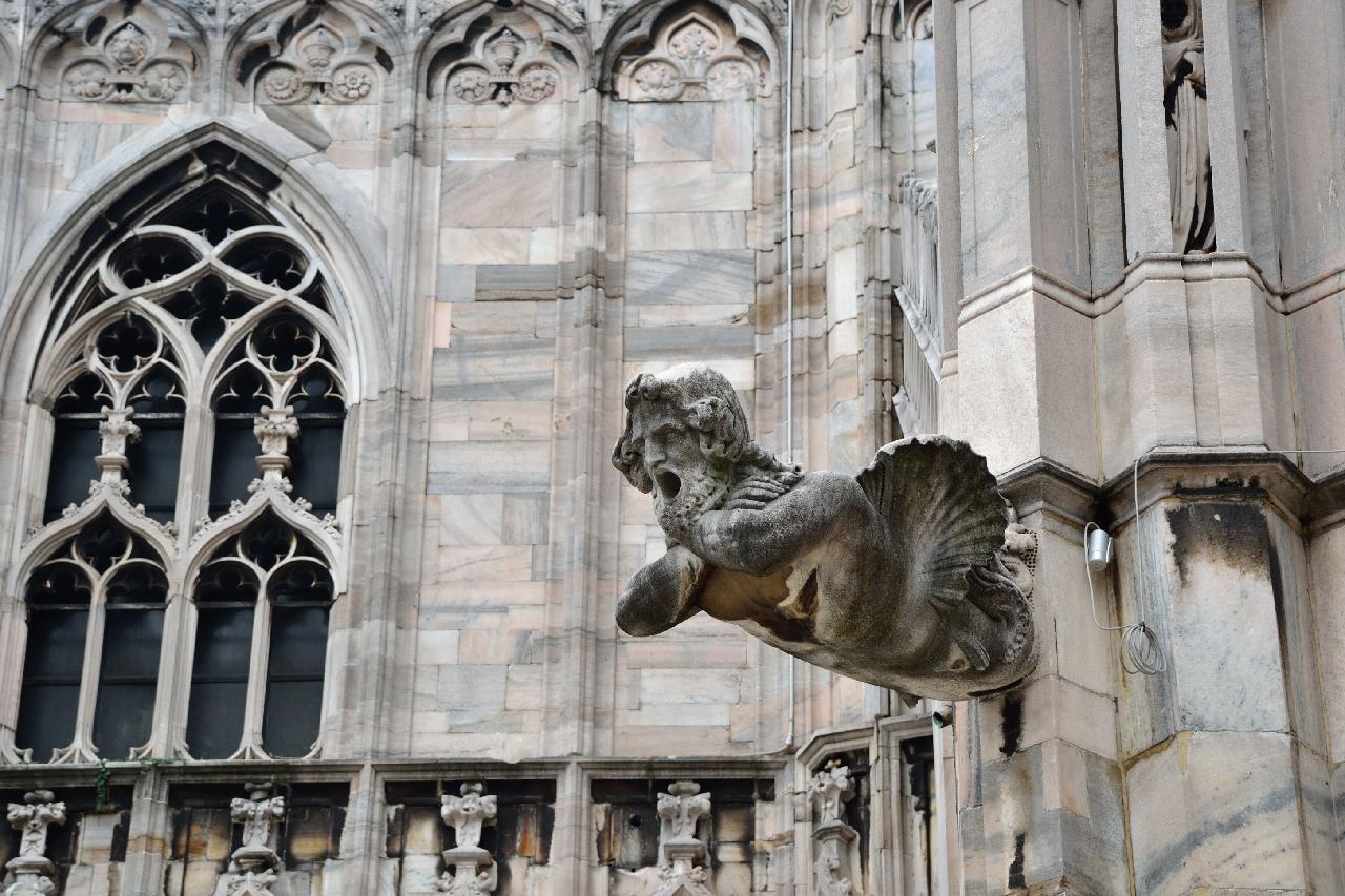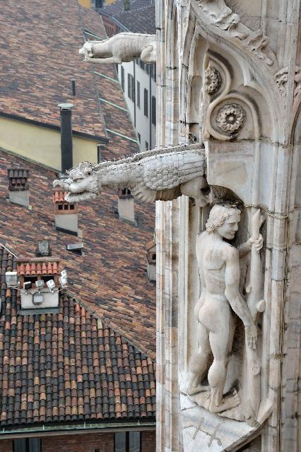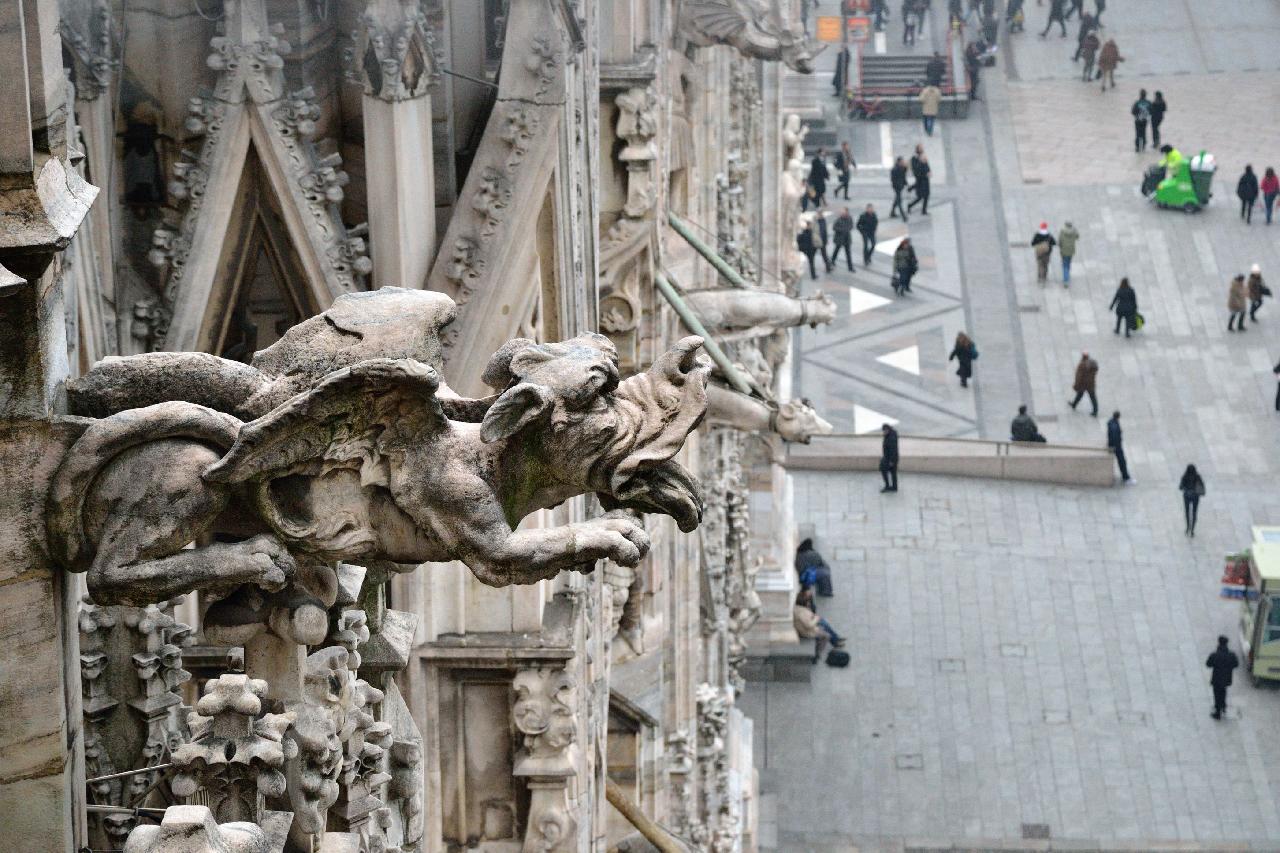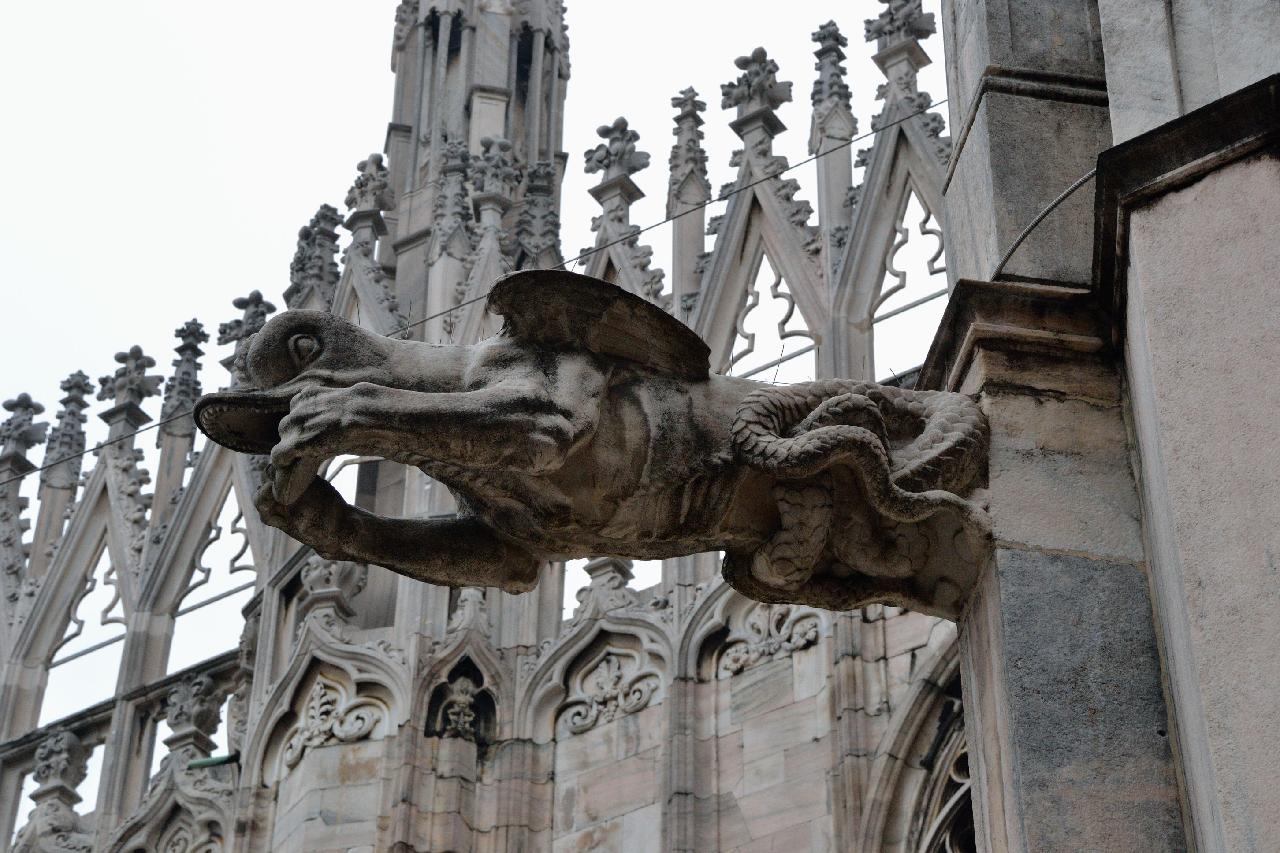 Огромное впечатление произвела прогулка по крыше миланского собора - это царство готики, скульптур, фигур всяческих странных животных.
