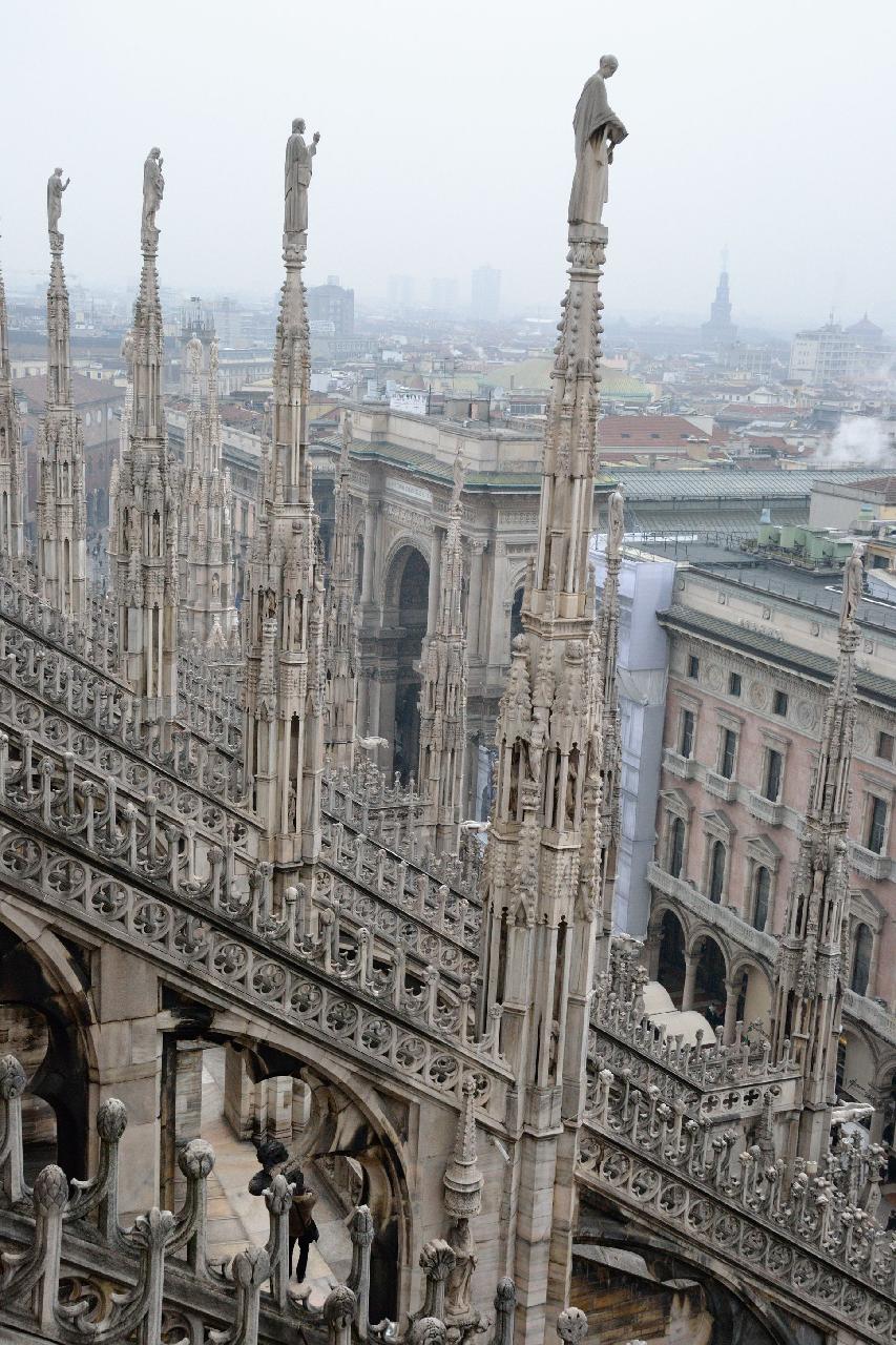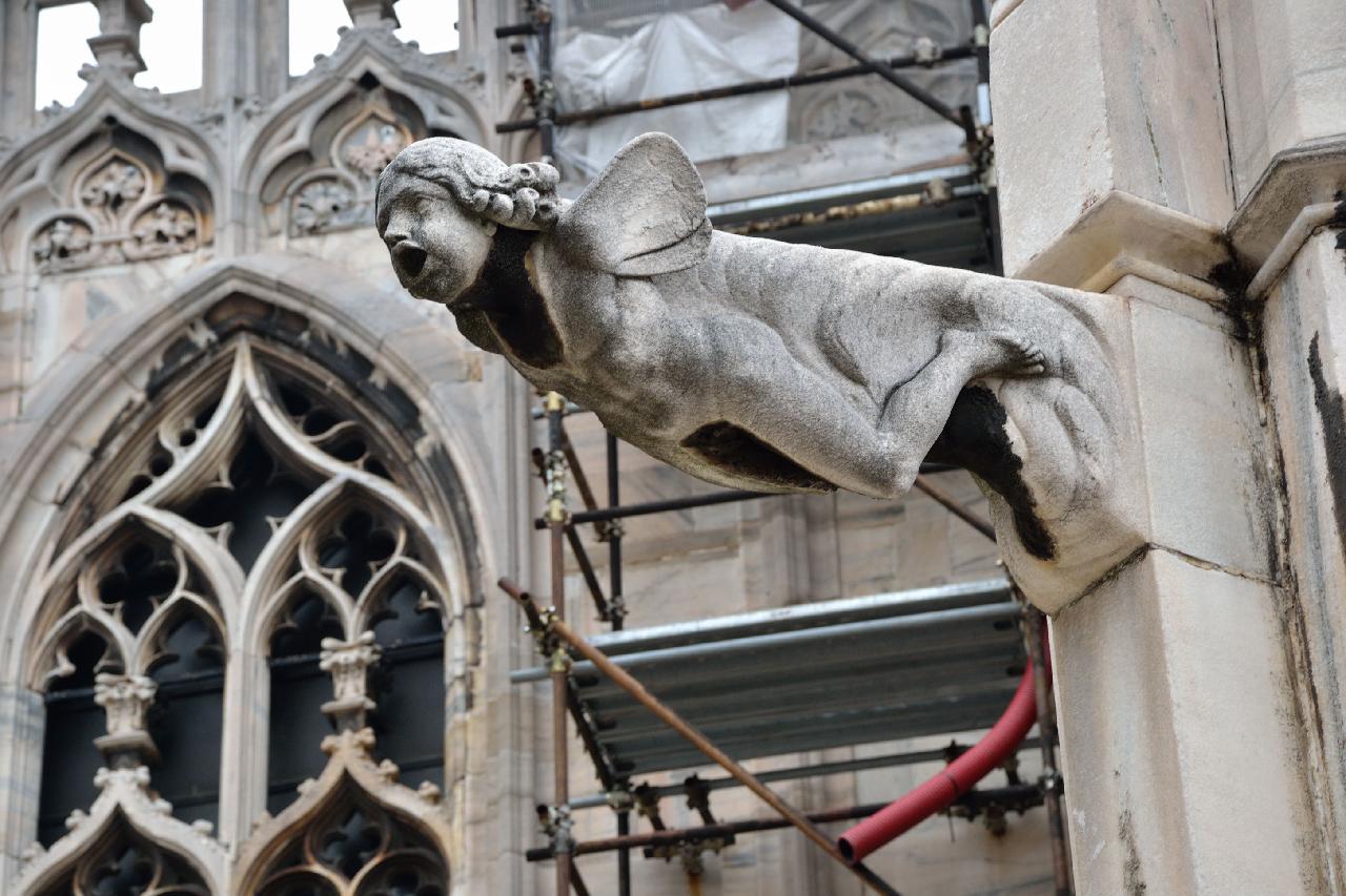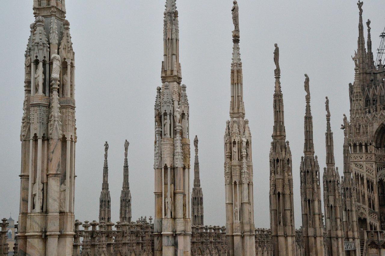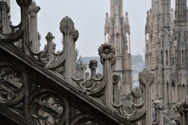 Огромное впечатление произвела прогулка по крыше миланского собора - это царство готики, скульптур, фигур всяческих странных животных.