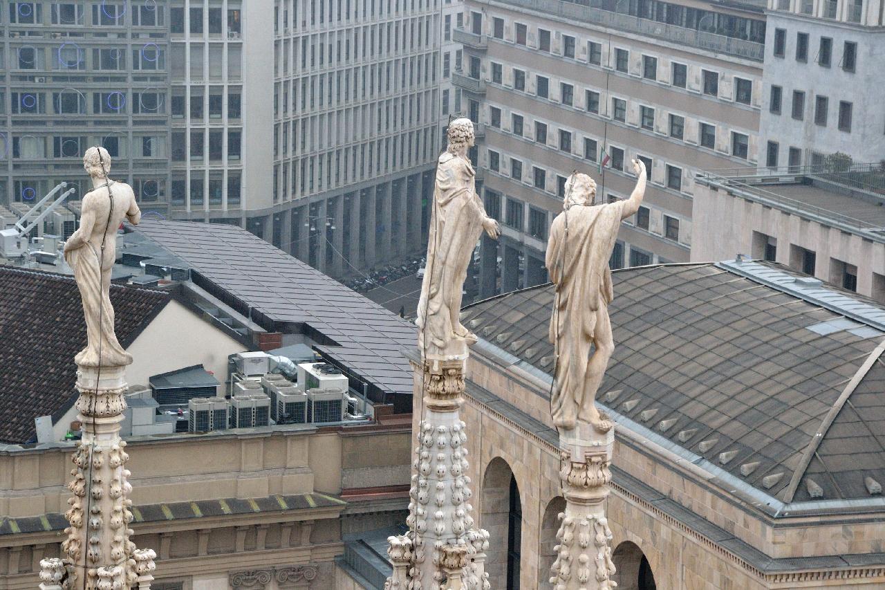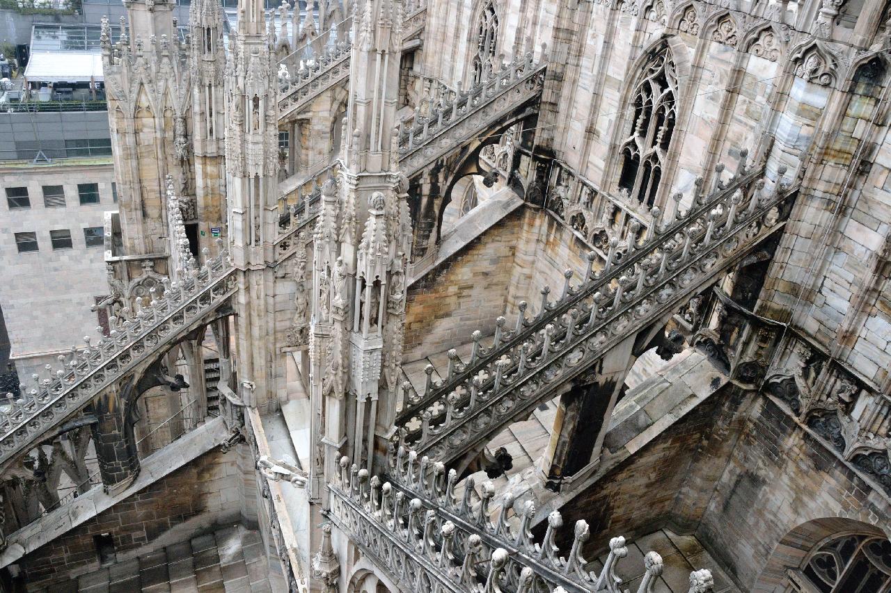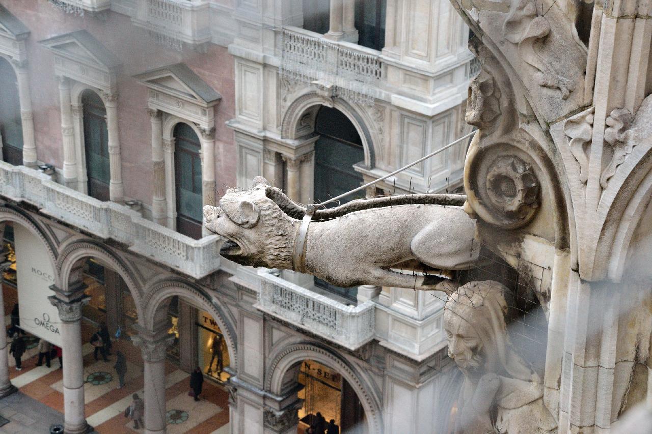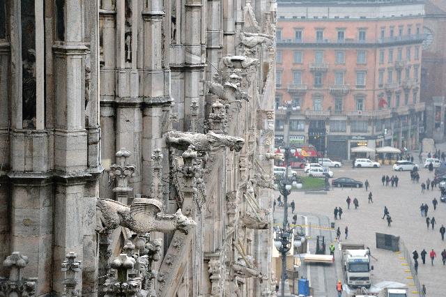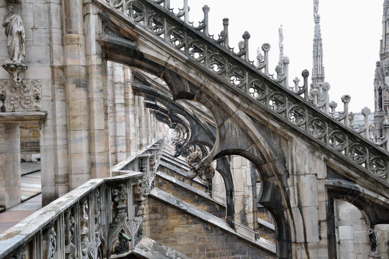 Огромное впечатление произвела прогулка по крыше миланского собора - это царство готики, скульптур, фигур всяческих странных животных.