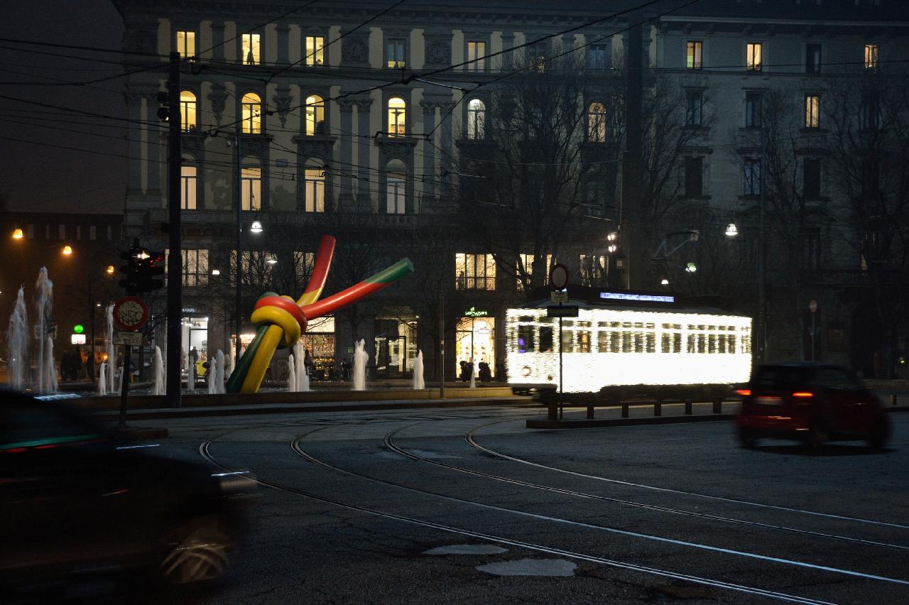 | Ночной Милан очень красив. А этот памятник - снова да Винчи |
