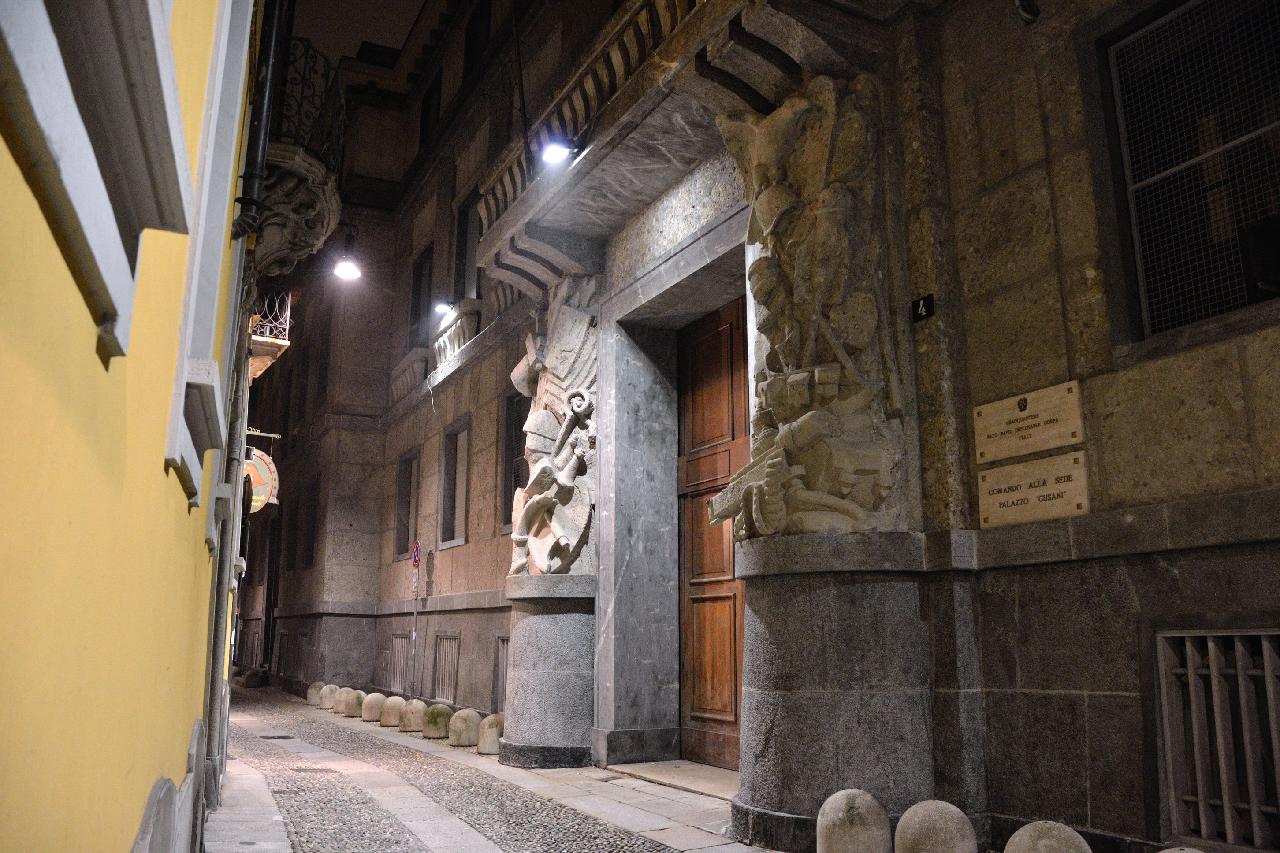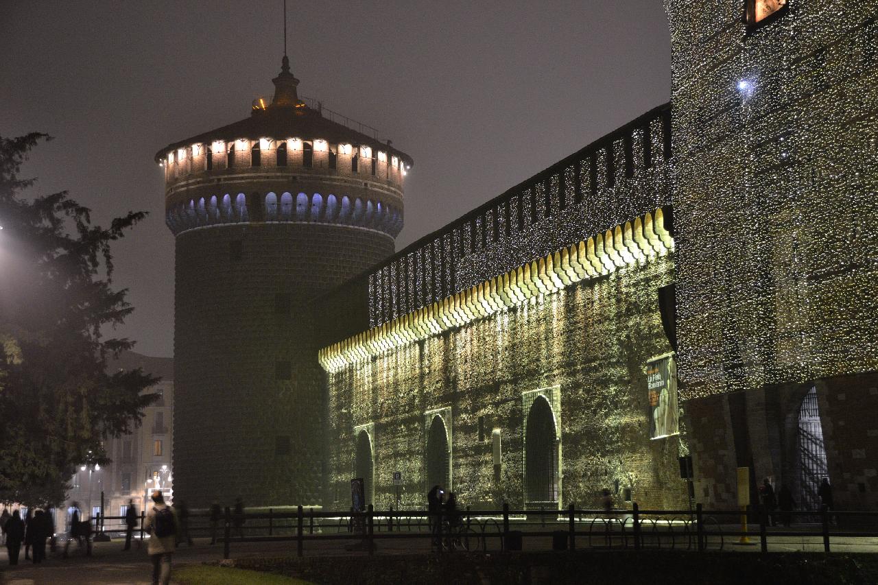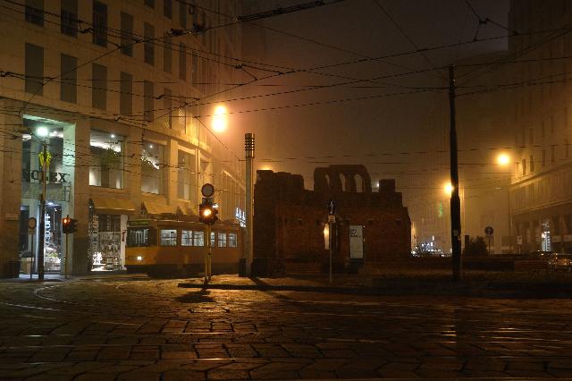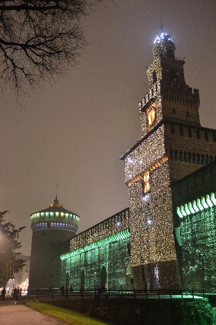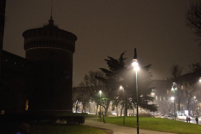 | Когда мы подошли к замку Сфорца, уже стемнело и туман сгустился |