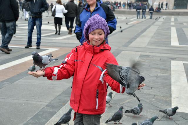 | На улице довольно холодно, на главной площади нахохлившиеся голуби обсели памятники |