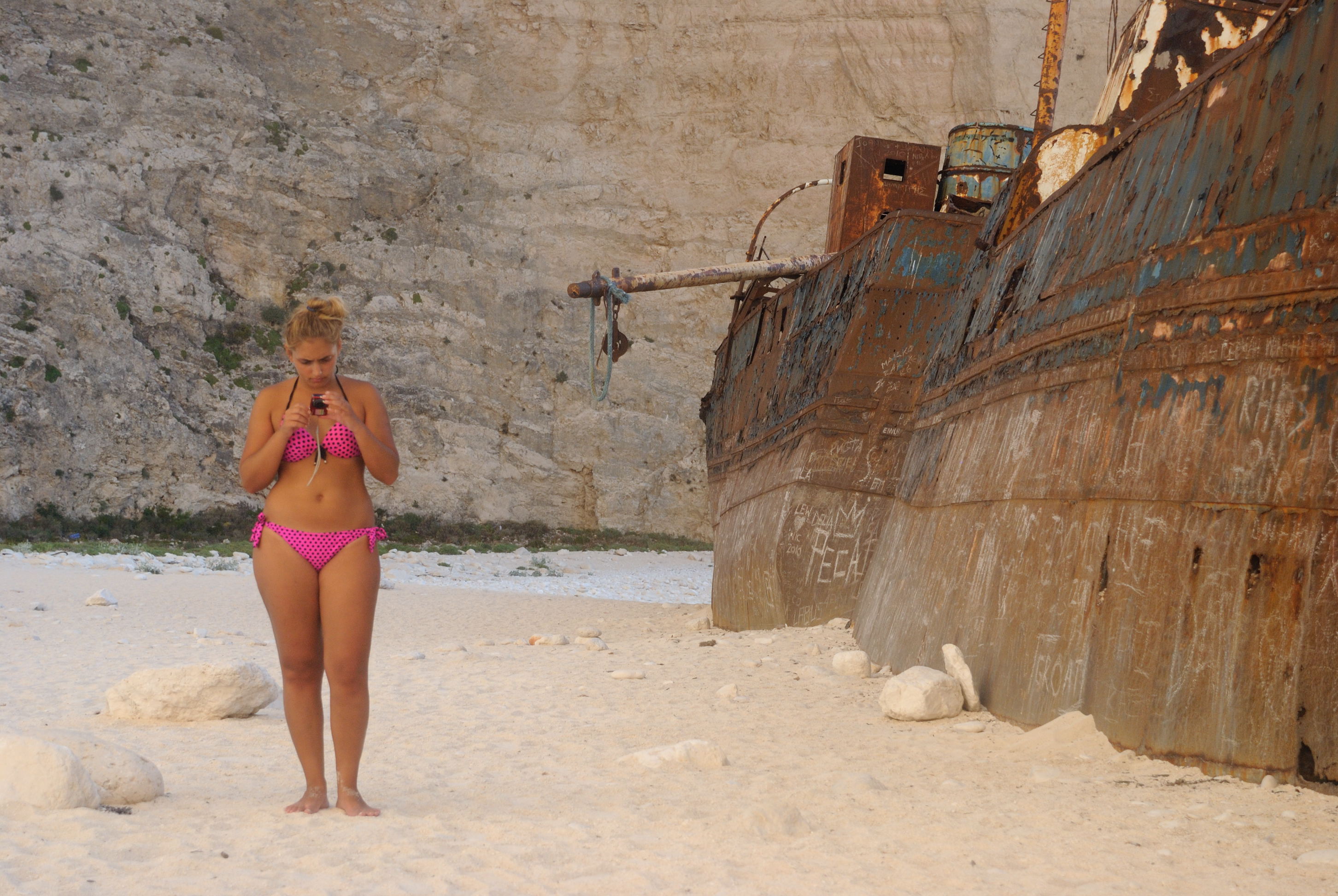 Вот и бухта. Выглядящий, словно декорация, остов корабля, вблизи представляет собой брутальную ржавую железяку, хотя и живописную