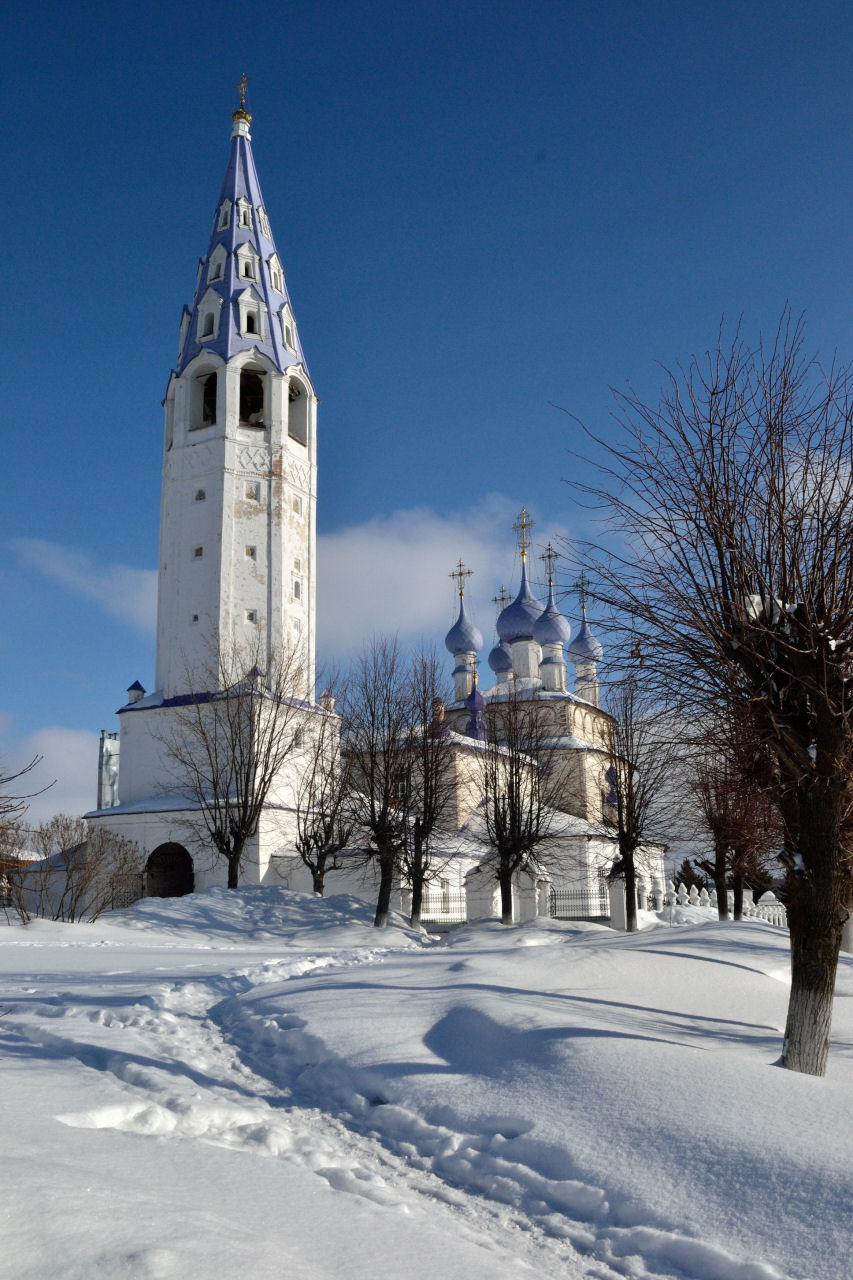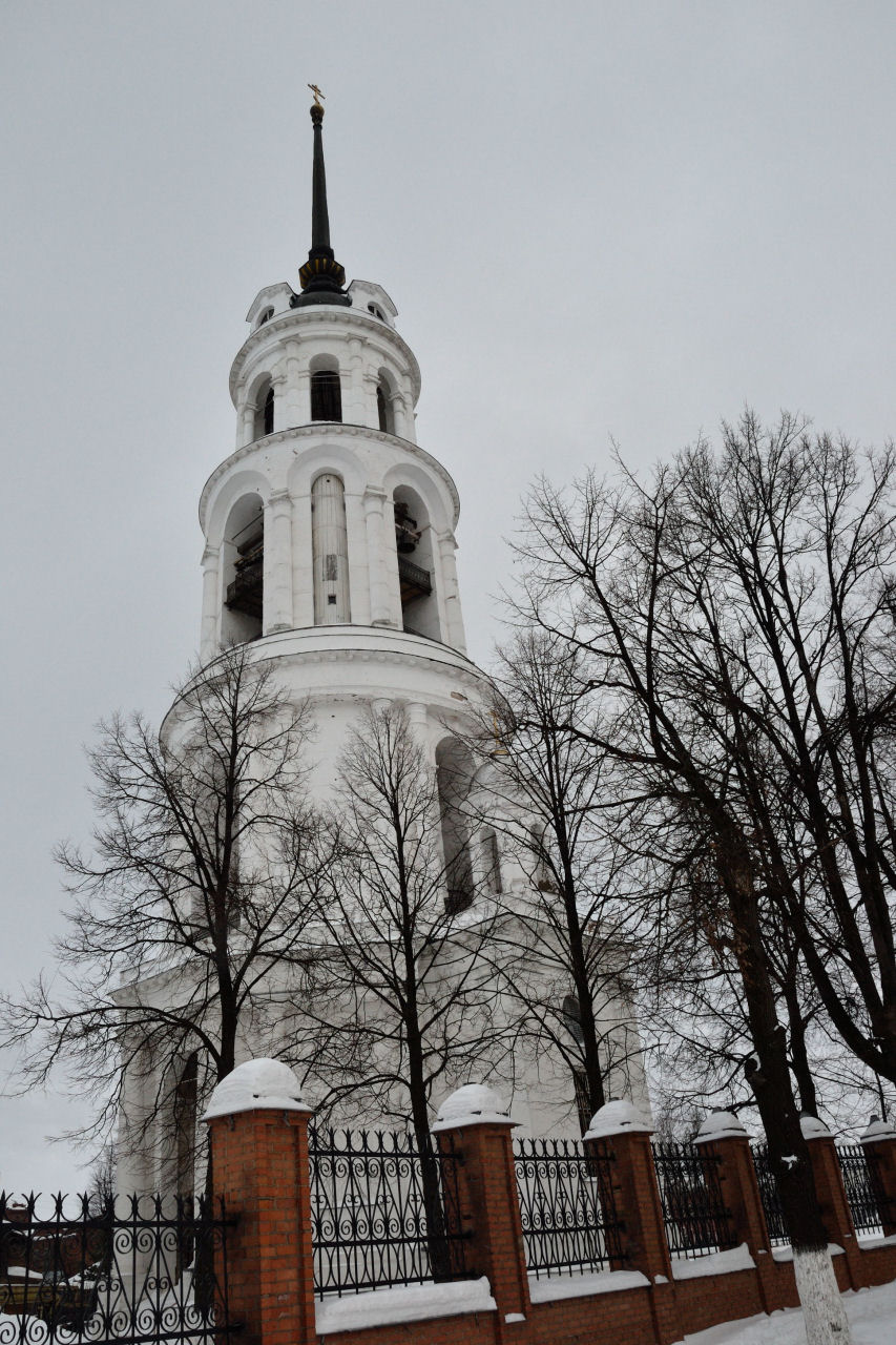 | Следующая остановка - Шуя. На снимке колокольня Воскресенского собора, вторая по высоте среди отдельно стоящих колоколен православных храмов (106 метров). |