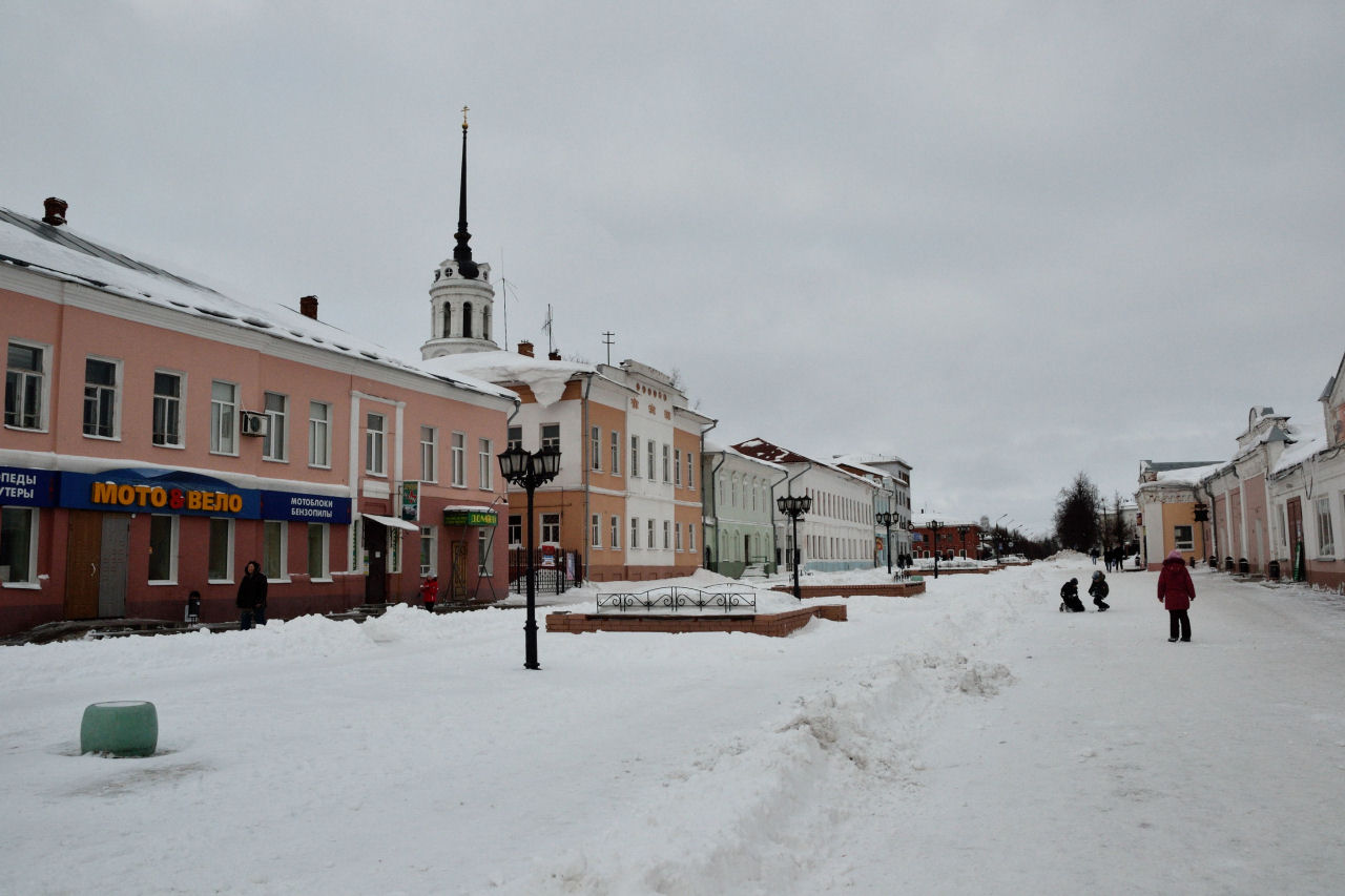 | Главная улица Шуи пустынна. По случаю выходных закрыты все музеи и почти все магазинчики. |