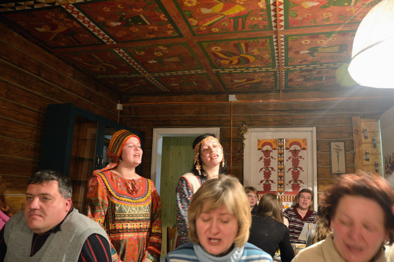 | ...и ужин в избе, с песнями и шуйскими наливочками. |