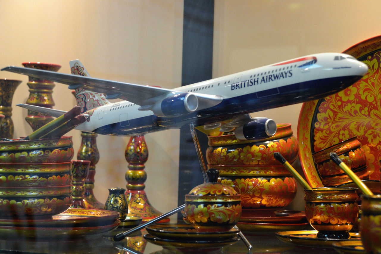 | Здешние мастера умудрились даже самолет (и не один) расписать под Хохлому. Говорят, и правда такие летают в Лондон. |