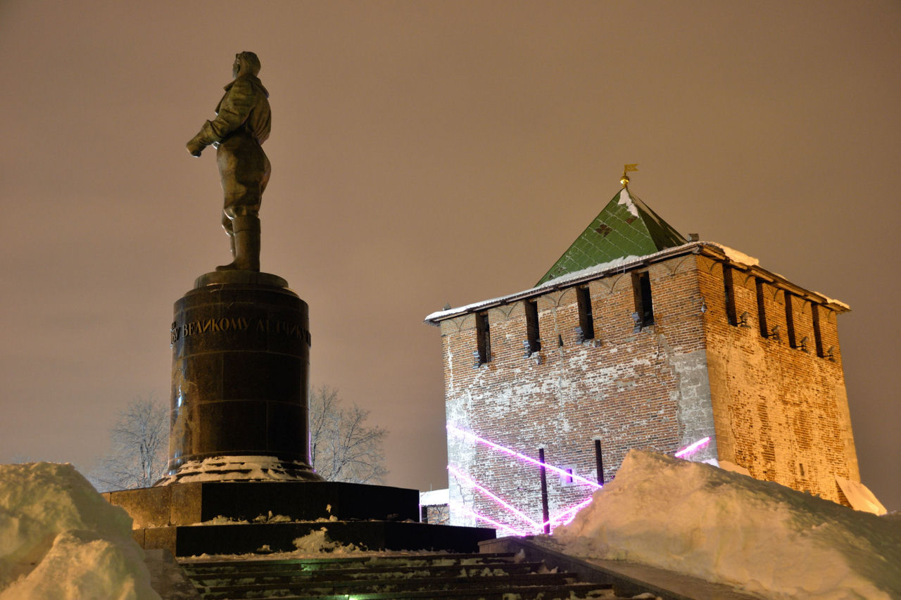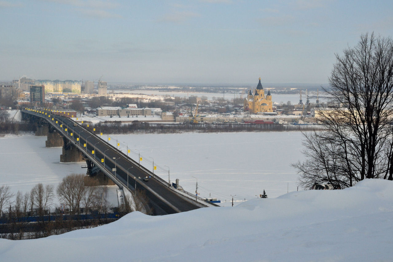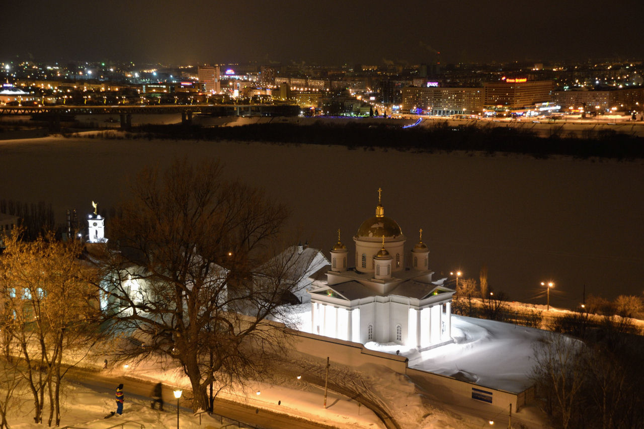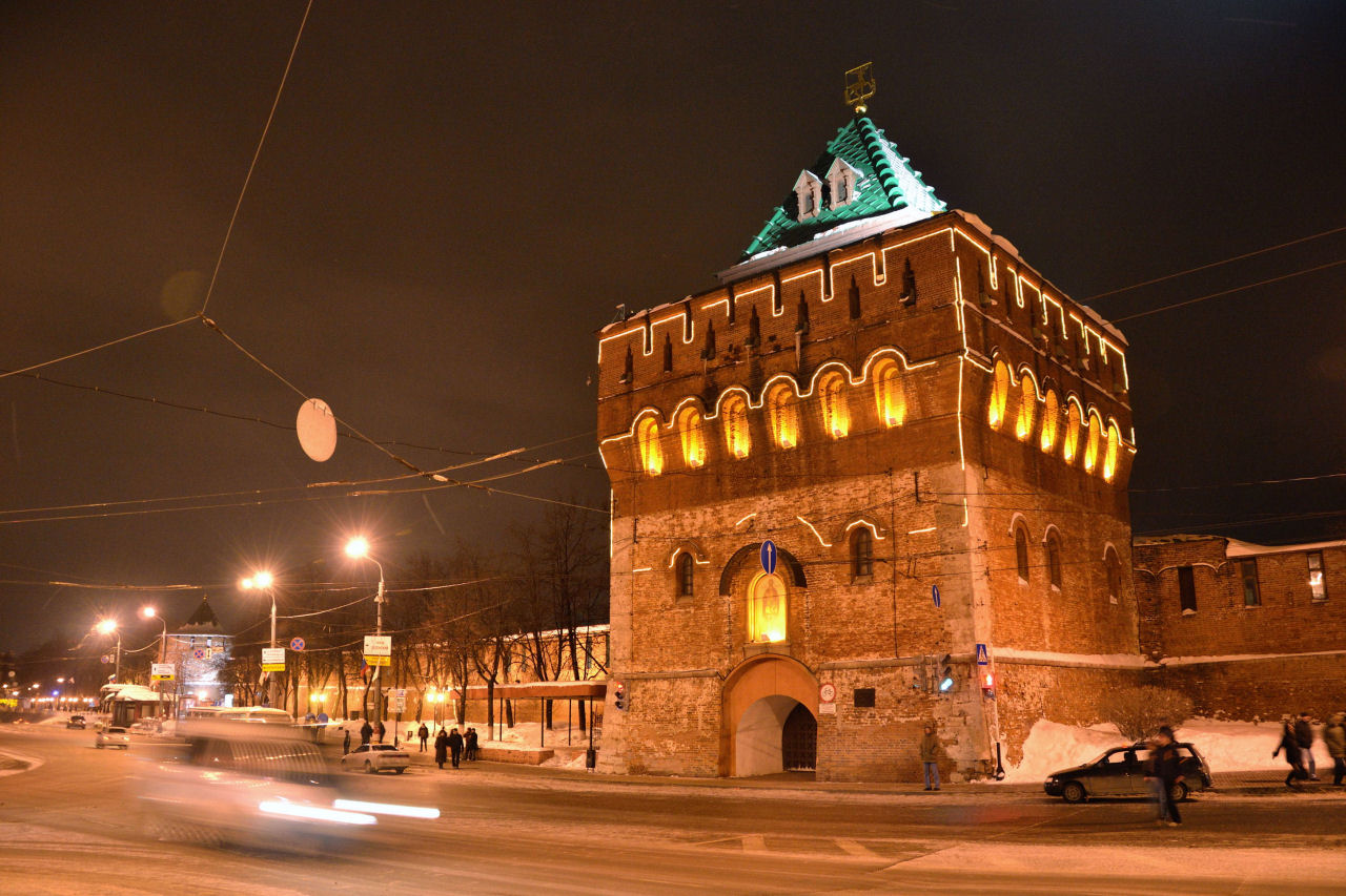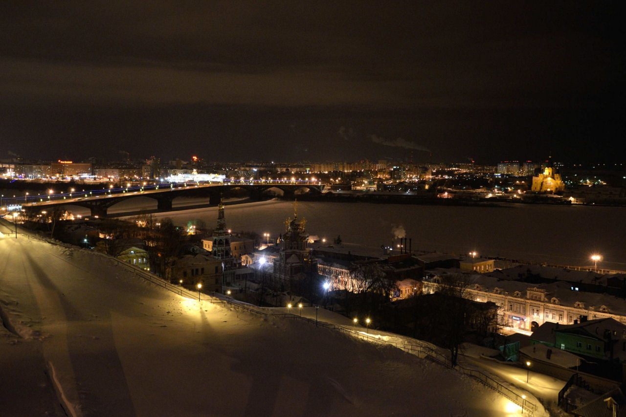 | На ночь нас привезли в гостиницу "Нижегородская" в Нижнем Новгороде. Очень неплохая гостиница, а вид из окна просто шикарный. |