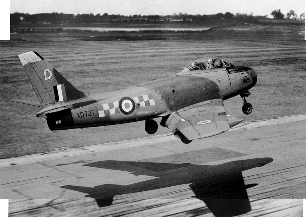 Canadair Sabre F.4 XD727 of 92 Squadron RAF, Linton-on-Ouse, was one of the last Sabres in Fighter Command when this picture was taken in 1956. All of the RAF Sabres were flown to England by No 1 Long Range Ferry Unit, Transport Command, between December 8, 1952, and December 19, 1953.Самолёты на фотографии: Canadair CL-13 Sabre - Канада - 1950
