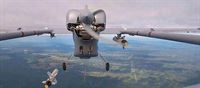 A close look at the Orion’s MOES EO/IR payload, 410mm in diameter and weighing 123.4lb, which houses a pair of thermal imagers in addition to a TV camera and laser rangefinder/designator to enable drone use in the precise targeting role