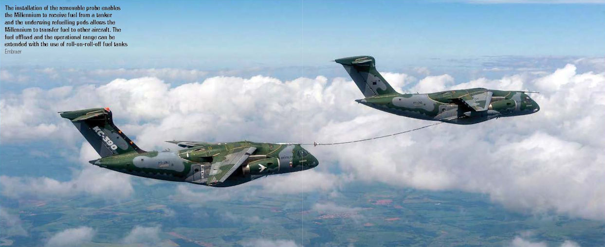 Регистрационный номер: PT-ZNJ The installation of the removable probe enables the Millennium to receive fuel from a tanker and the underwing refuelling pods allows the Millennium to transfer fuel to other aircraft. The fuel offload and the operational range can be extended with the use of roll-on-roll-off fuel tanks
