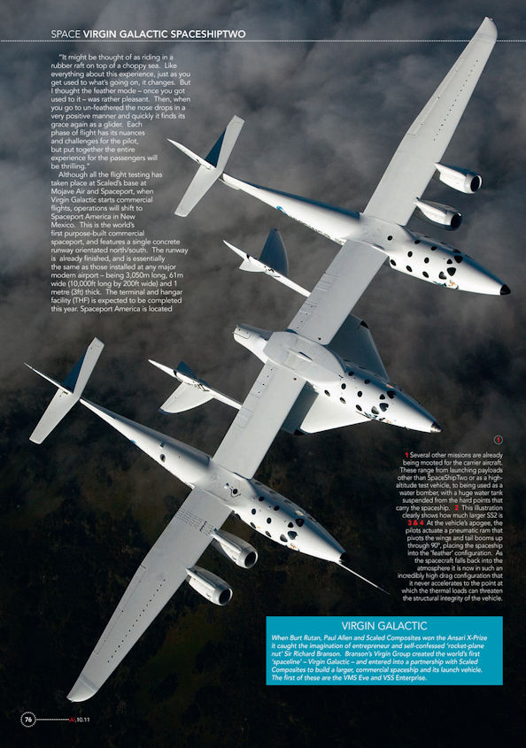 Регистрационный номер: N339SS [12], N348MS [10] 22 марта 2010г.: Scaled Composites SpaceShipTwo (VSS Enterprise) выполнил первый безмоторный полет в аэрокосмопорту Мохава, Калифорния. Суборбитальный космический корабль транспортировался самолетом-маткой White Knight Two.