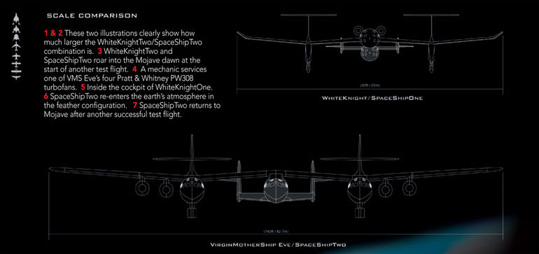 These two illustrations clearly show how much larger the WhiteKnightTwo/SpaceShipTwo combination is.