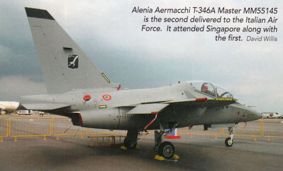 Alenia Aermacchi T-346A Master MM55145 is the second delivered to the Italian Air Force. It attended Singapore along with the first.