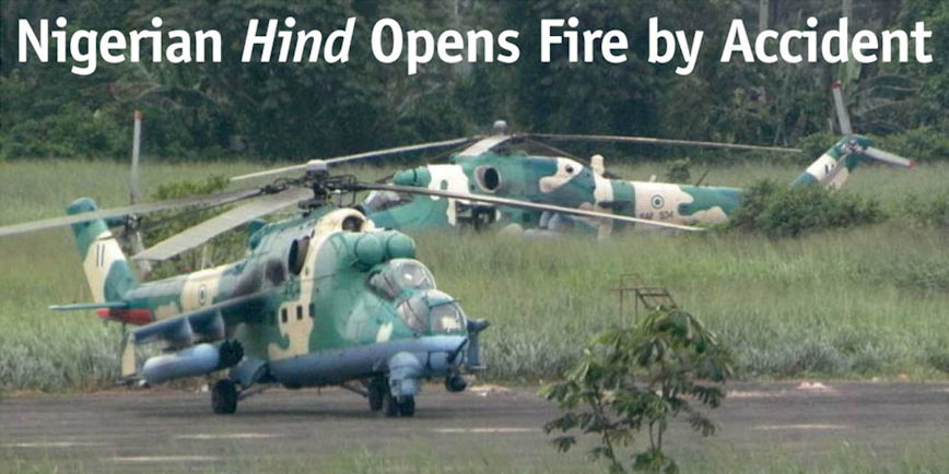 Two Nigerian Air Force Mil Hinds of the 97 Special Operations Group are seen at Port Harcourt, their home base. The service has nine Hinds, comprising two Mi-24V Hind-Es (including the one seen here in the foreground) plus two Mi-24P and five Mi-35P Hind-Fs, which are maintained by the Belarusian company BVST. The nearest aircraft carries a fuel tank and a rocket pod under its starboard stub wing.