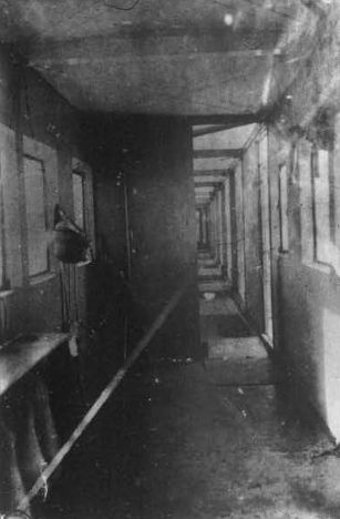 Inside the Il’ya Muromets model Beh, looking aft, showing the bomb carriers at left but here loaded with sandbags.