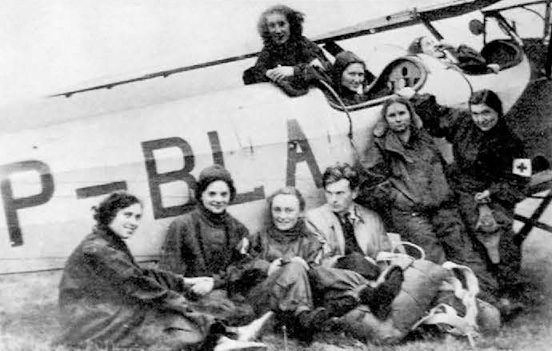 Регистрационный номер: SP-BLA Парашютистки - медсёстры польского Красного Креста. Фото на память с инструктором на фоне самолёта RWD-8. Варшава, 1937-1938 гг.