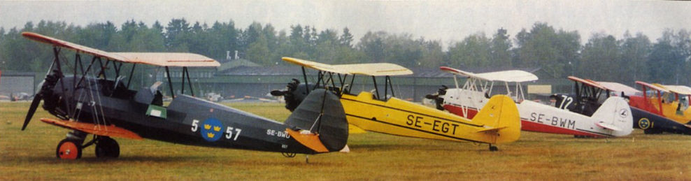 Регистрационный номер: SE-BWM, SE-BWU, SE-EGT A rare sight at Lyungbyhed on August 25, 1996: three Fw 44 Steiglitzes in a row.