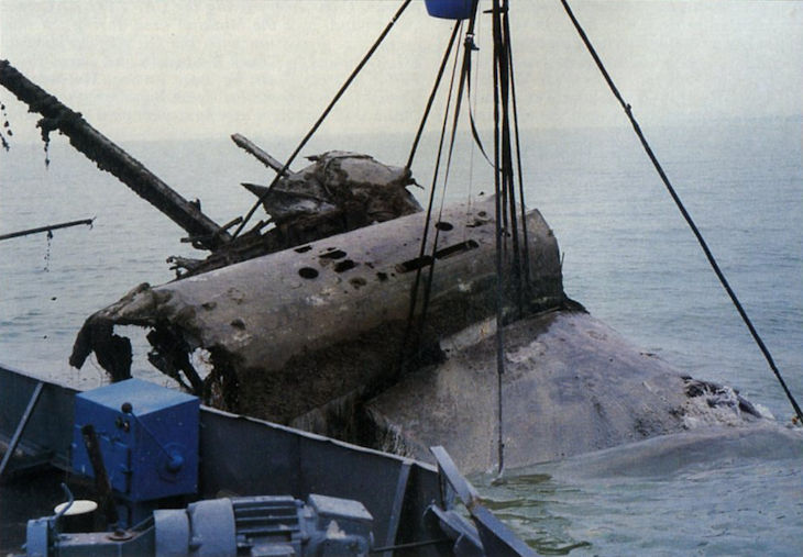 The centre-section of Ju 88G-1 Wnr 714628 emerges from Hungary’s Lake Balaton.