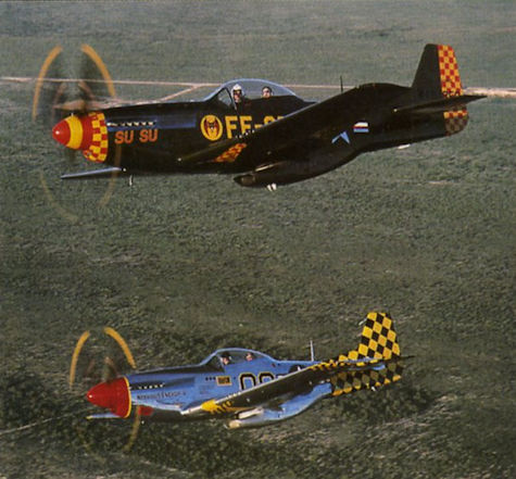 Stan Musick formating his P-51D (foreground) with Wally Sanders’ Mustang flown by Jeff Ethell.