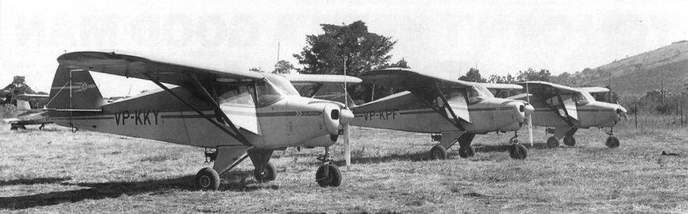 Регистрационный номер: VP-KKY, VP-KPF [2] A line-up of Piper Tri-Pacer 135s of the Kenya Police Air Wing at Mweiga. Note the carriers behind the mainwheels, designed to carry four 19lb fragmentation bombs.