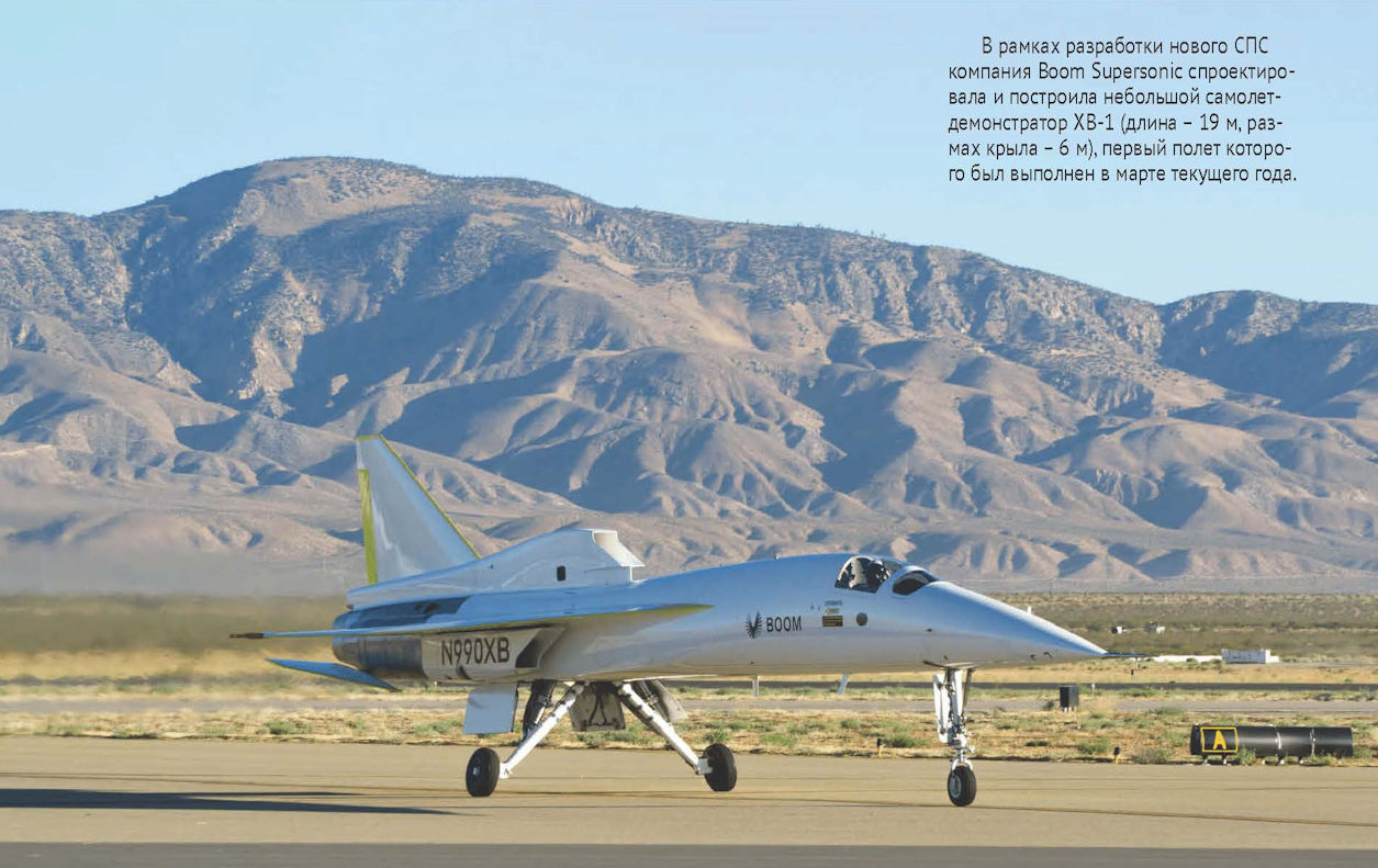 Регистрационный номер: N990XB [2] В рамках разработки нового СПС компания Boom Supersonic спроектировала и построила небольшой самолет-демонстратор XB-1 (длина - 19 м, размах крыла - 6 м), первый полет которого был выполнен в марте текущего года.