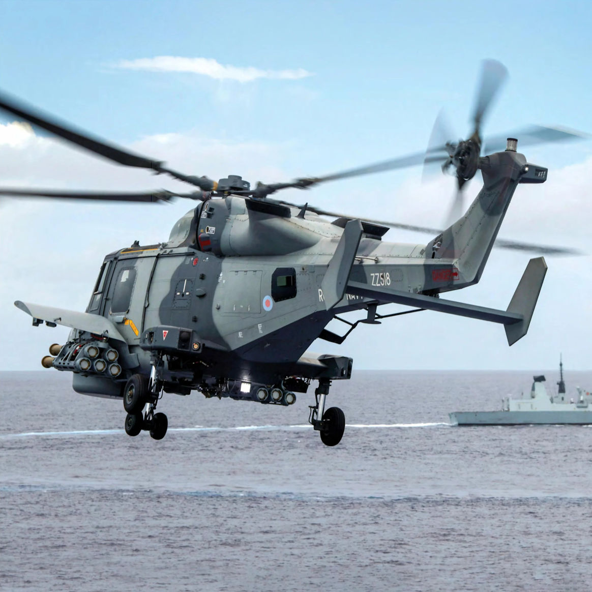 Регистрационный номер: ZZ518 [2] The Royal Navy Wildcat HMA2 has successfully conducted maximum loadout trials with 20 Martlet missiles on a new weapons wing in 2022