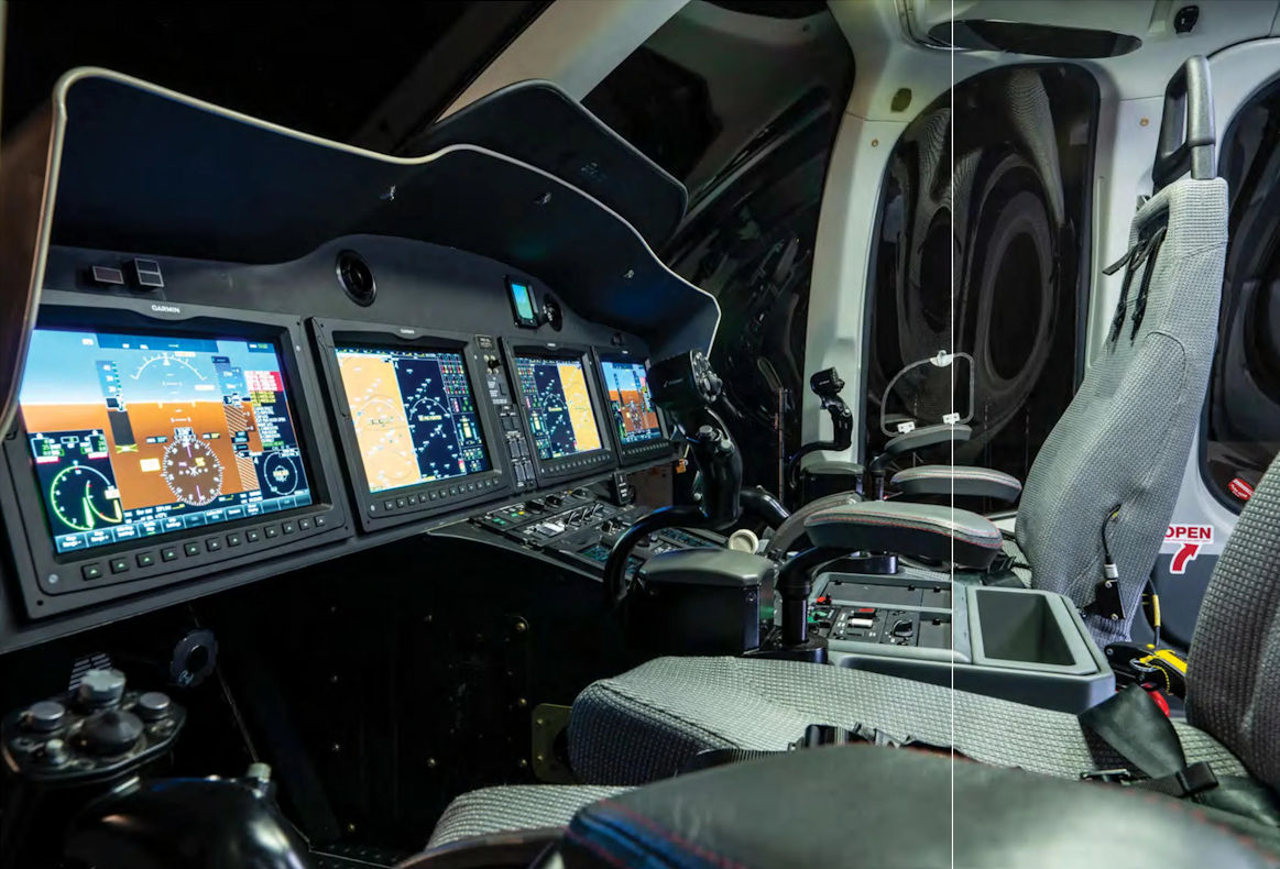 The Relentless is the first commercial helicopter to incorporate the Garmin 5000H, a touchscreen avionics suite. The Bell 525's standard configuration G5000H Flight Deck includes the HSVT (helicopter synthetic vision technology) that gives the pilots a 3D depiction of terrain, obstacles, traffic and more in any visibility condition