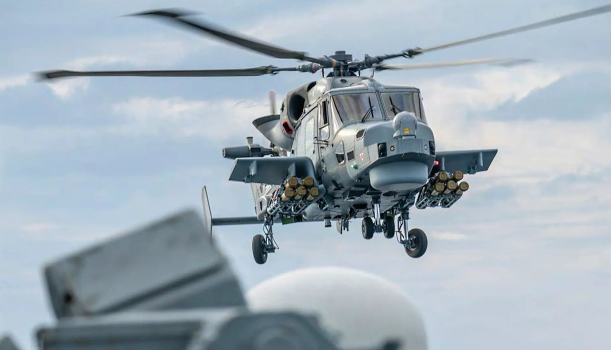 A Martlet-configured Wildcat HMA2 helicopter seen operating from HMS Diamond with an outload of 10 LMM missiles