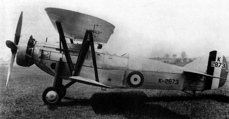 Регистрационный номер: K3587 The same aircraft as K3587 at the A&AEE in 1933, with its turret removed, during comparative performance trials with and without the turret fitted.