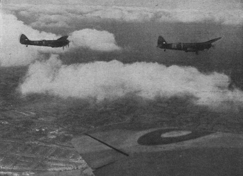 BATTLE DRESS: A Hawker Hurricane 8-gun fighter in flight over France. It will be noted that the red, white and blue markings are de rigueur.