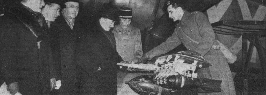 Members of the Anglo-French Parliamentary Committee inspecting the bomb racks of the Westland Lysander.