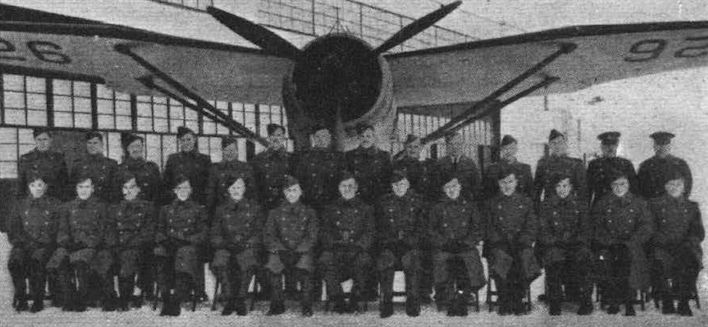 FIRST OF THE CANUCKS: The officers of the first unit of the Royal Canadian Air Force chosen for active service overseas. They are equipped with Lysander II army cooperation aircraft. In the centre is the squadron leader W. D. Van Vliet, the commanding officer.