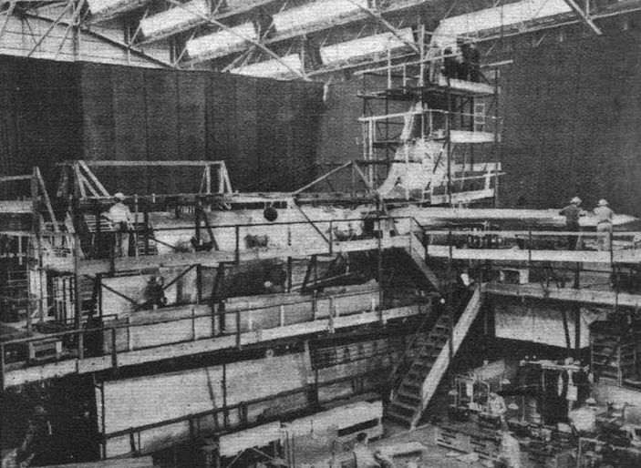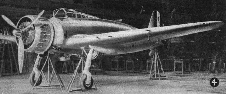 NATIONALISATION GETS GOING: Morane 406 single-seater fighters for L’Armee de l'Air on the assembly line in one of France’s big new factories - actually at Angers. The Morane 406 has a 20 mm. shell-gun between the cylinder banks of its Hispano Suiza engine, and two free-firing, wing-mounted machine guns.