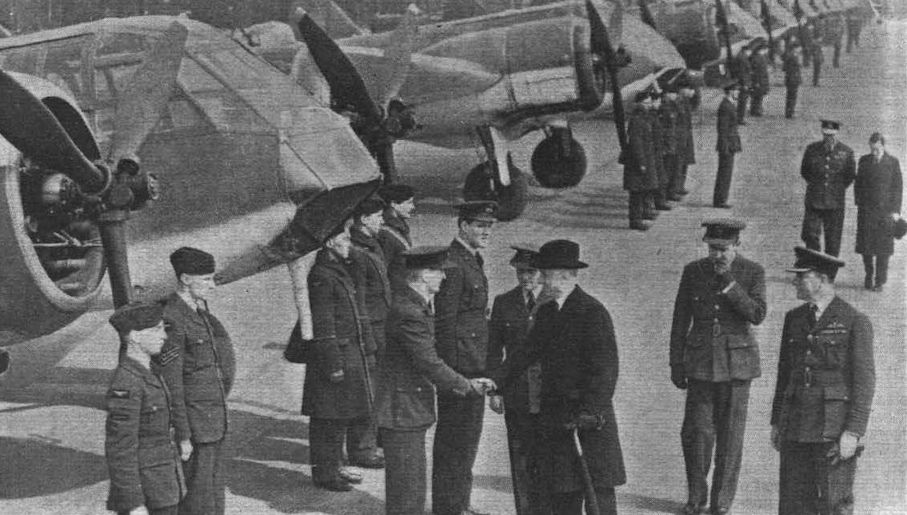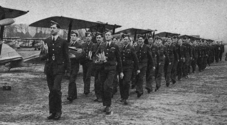 Complete with wings. The twenty-seven pilots shown on p. e march past their training machines, the Fairey Battle and the Airspeed Oxford.