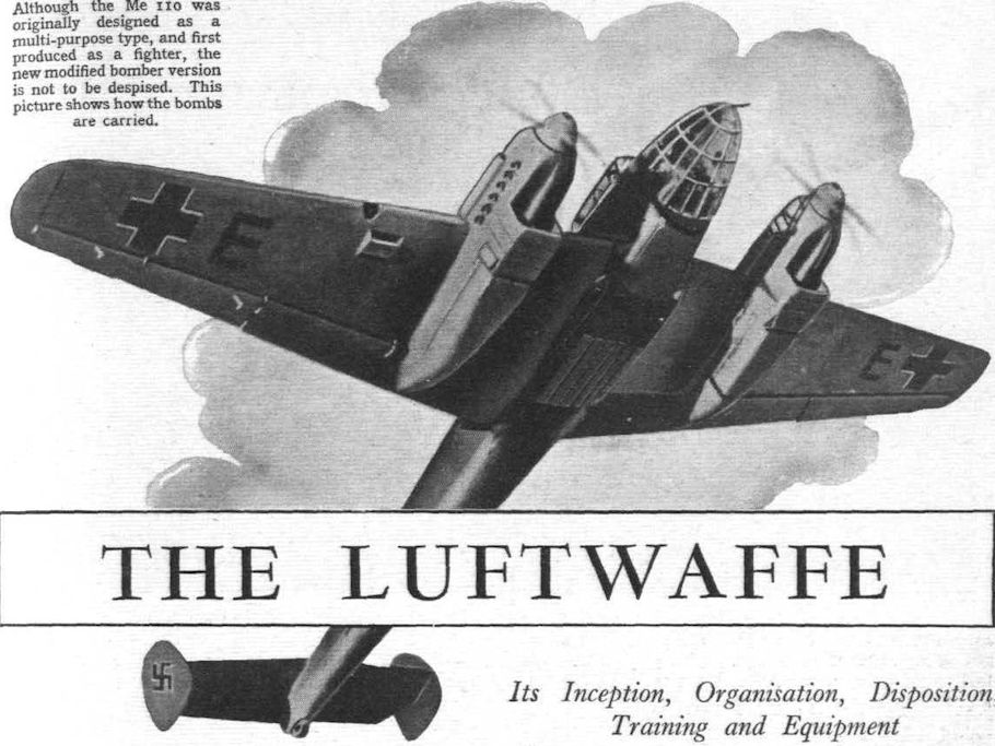 Although the Me 110 was originally designed as a multi-purpose type, and first produced as a fighter, the new modified bomber version is not to be despised. This picture shows how the bombs are carried.