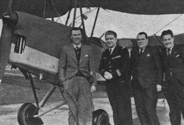 The group shows royal interest, 1924. The Prince of Wales (now Duke of Windsor) paid a visit to Southampton. On his left in this picture is Commander James Bird. Also in the group are Mr. R. J. Mitchell, the designer, and Capt. Biard, the test pilot.