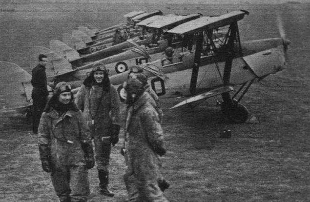 Регистрационный номер: G-ADNZ Pupils and instructors at No 10 EFTS, Yatesbury, in April 1940, with Bristol's civil and Service Tiger Moths in identical camouflage and yellow, with roundels.