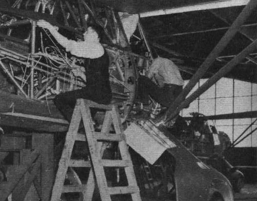 Installing equipment in a Lysander at a Canadian aircraft factory.