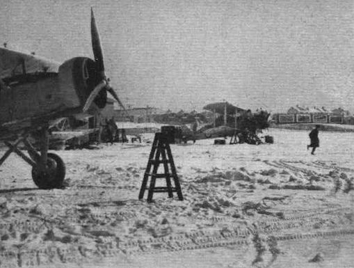 Clearing ice and snow from the wings of a Henschel Hs 126 army co-operation machine somewhere behind the Siegfried Line; a picture taken some weeks ago.