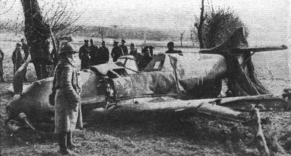 A Messerschmitt Me 109 fighter brought down behind the French lines.