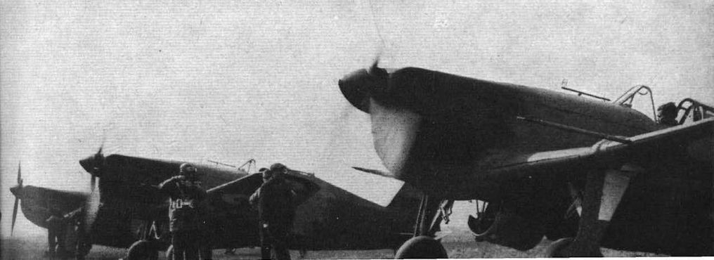 An imposing line-up. Note the method of mounting the guns in the top of the engine cowling.