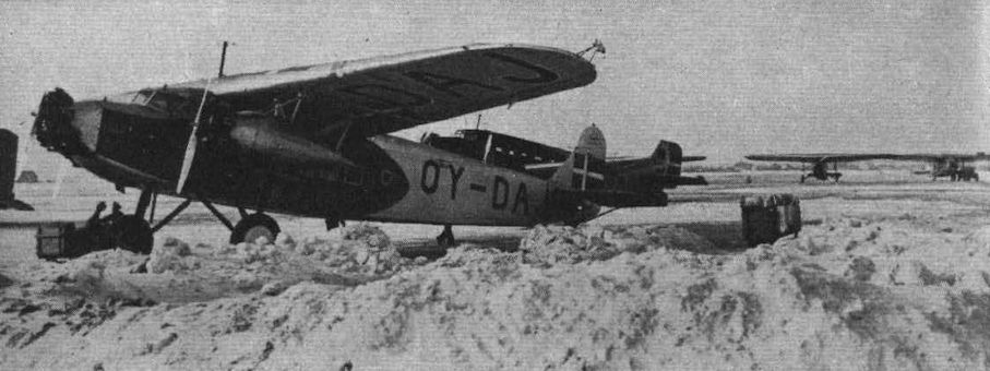 Регистрационный номер: OY-DAJ Some fairly ancient Fokkers were used on inland work. The picture shows some ot them in the snow.