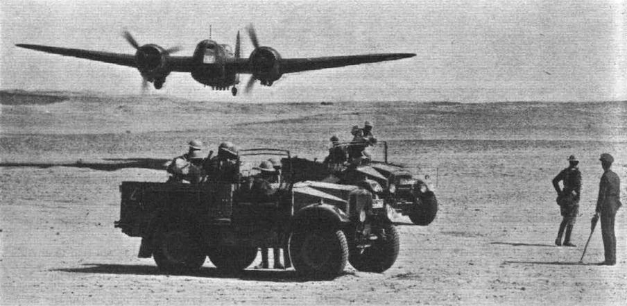 DESERT DEFENCE: A Bristol Blenheim of a Middle East bomber squadron co-operating with the army.