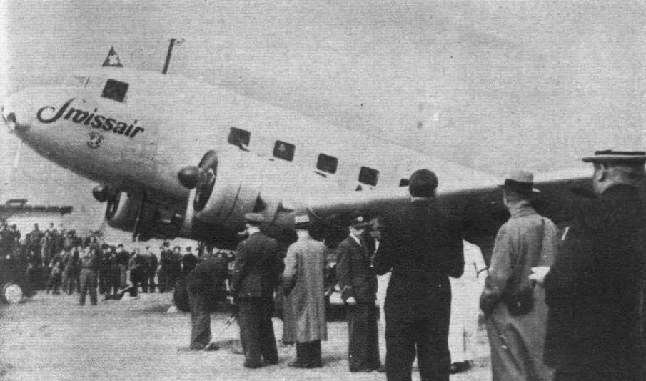 SPRING SEES A REVIVAL OF COMMERCIAL FLYING, BUT NOT IN THIS COUNTRY. Before the start of the first Swissair Douglas on the inaugural flight of the new Locarno-Rome route.