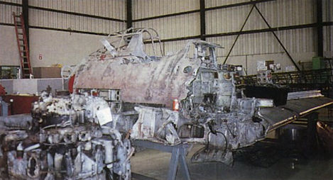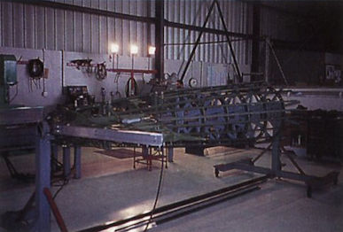 The rear fuselage in its jig on November 26, 1991, during rebuild.