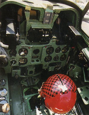 The Zero’s simple cockpit. The seat was moved back a few inches to accommodate the larger American pilots who will fly the fighter (it is still a tight fit!). Note the machine-gun breeches protruding from the instrument panel.