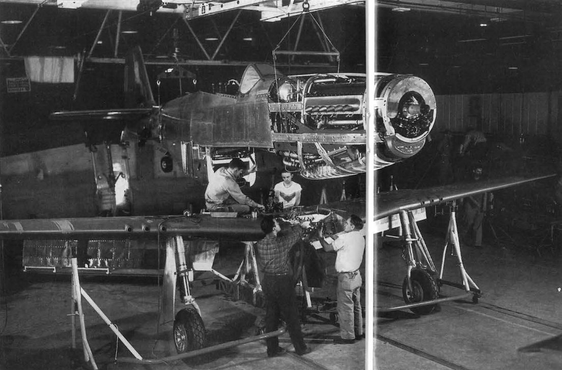 NAA female workers enjoy a bit of southern California sunshine while installing 20mm cannon. Despite their increased punch the cannon did not prove popular in the field, and armament was standardised as the 0-50in Browning air-cooled machine-gun.